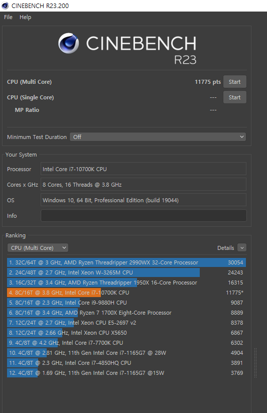 따라서 개발자용 PC로 AMD 보다는 Intel CPU를 추천합니다. 심지어 i7-7700이 2700x 보다도 빠름.