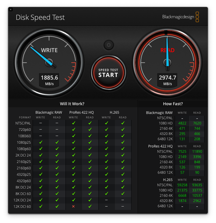 내장 디스크 속도: 쓰기 1885MB/s , 읽기 2974MB/s